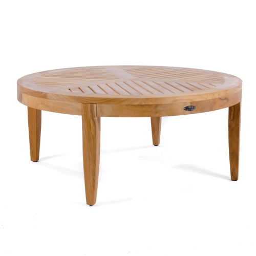 The Laguna Coffee Table can be a beautiful focal point to any seating arrangement. Its round shape makes it easy to move chairs and side tables around to create various relaxing spaces both indoors and out with other items from our Laguna Collection. Its gently tapered legs, rounded apron, and handsome table top design distinguishes it from many other teak coffee tables.