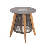 Tables and lanterns are framed with both Certified premium teak, powder-coated aluminum tops, and all-weather nautical rope. Illuminating light filters through hand-woven all-weather nautical rope.