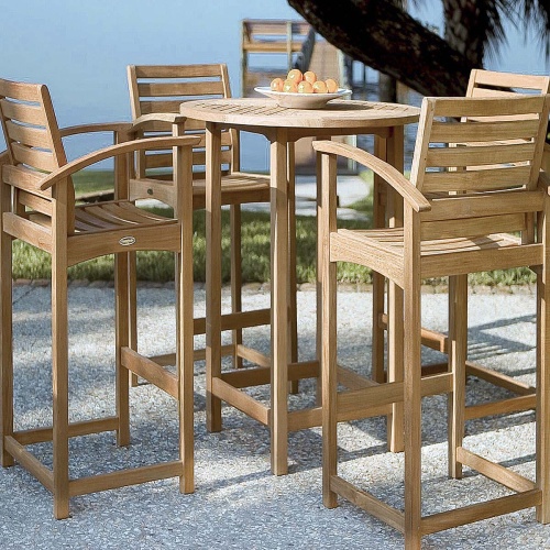 Elegant, durable, and functional, the Somerset 5 piece Bar Set is the perfect solution for an inviting and relaxing area to entertain guests, indoors or out. With the generous Somerset Bar Stools and the convenient Somerset Bar Table, this set was created with your entertainment and comfort in mind.