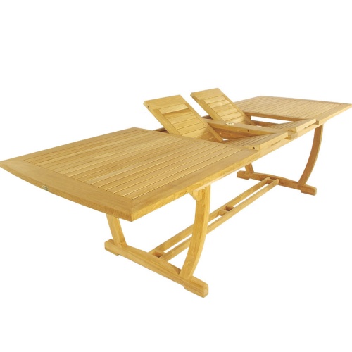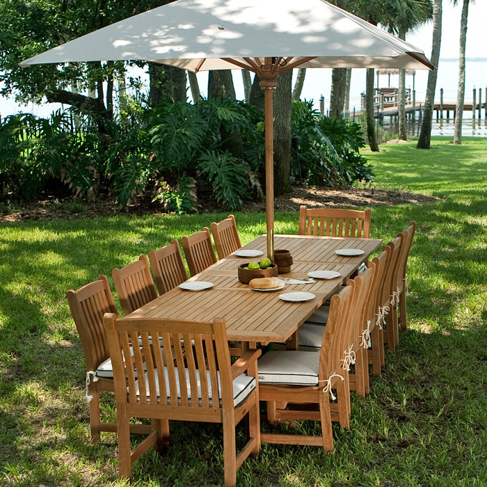 The Curved Dining Armchair Set for 8-12 upholds the traditional craftsmanship of teak furniture. The curved backrests and seats of the dining chairs maximize comfort even without cushions, while the versatility of the extension table allows for groups of 8-12 depending on your needs. From small luncheons to an evening soiree, this dining set will provide a lifetime of memories with friends and family.