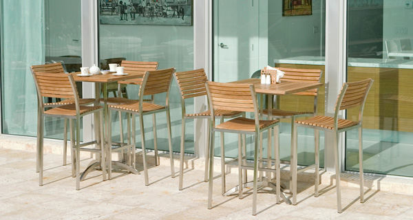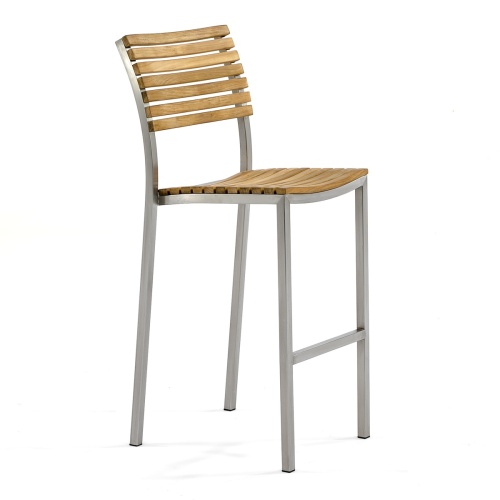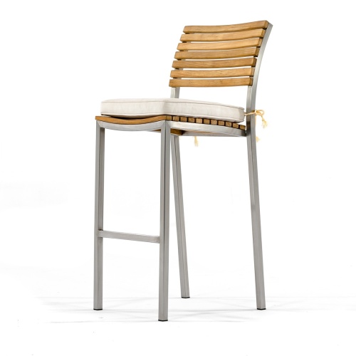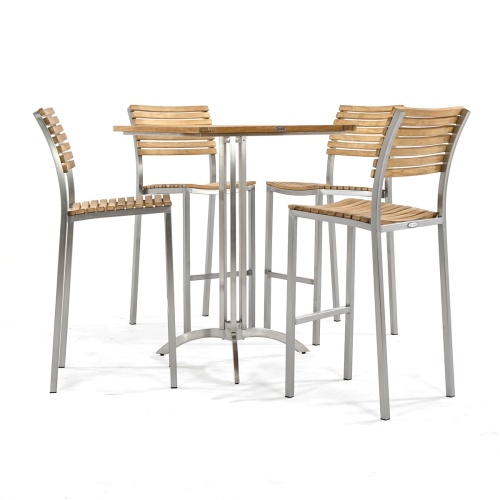 With the interplay of 304 Stainless Steel and Teak Wood, the Vogue Square Bar Set exudes a refined sense of style. Gently curved backrests and seats of the stools offer lasting comfort even without cushions. The tabletop of the bar table is caulked with Sikaflex, a high-grade polyurethane sealant that prevents liquids from seeping through, as well as providing a nautical appeal.