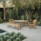 Martinique Teak Table: Large Levelers 5 ft Veranda Teak Backless Bench: Medium Levelers Veranda Teak Armchair: Glides |