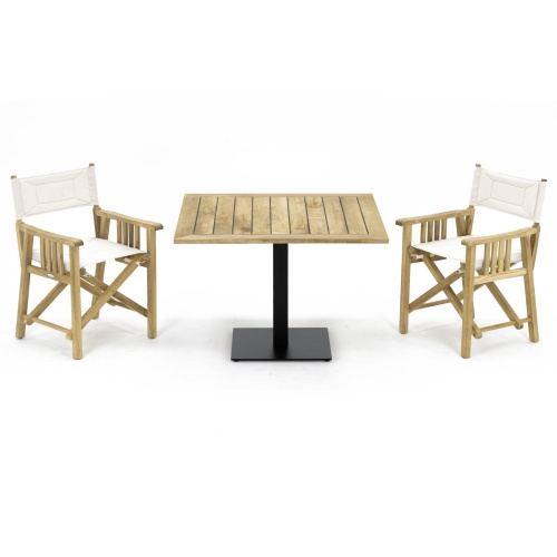 The refined luxuriousness of this teak bistro set has durability but also elegance in mind. Invite your guests to join you all season at your outdoor or indoor teak set to celebrate, entertain or just relax. The Teak Director Chair is portable, lightweight and versatile. It folds easily for storage. Excellent for those with minimal space, such as yacht and boat owners or high rise apartments. The Director Chair brings its own splash of color in its sling, made with premium Sunbrella fabric, and provides incomparable comfort.