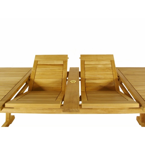 An optional Teak Umbrella, Sunbrella Cushions are available below. Our Sunbrella Cushion Quality includes Quick Dry Foam w/ Dacron Wrap, covers made of Premium Sunbrella Fabric and a 5 Year Warranty against fading. Our Sunbrella covers are easily removable and machine washable.
