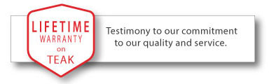A warranty is only as good as the company that stands behind it. We offer lifetime warranty on teak and we can back it with our 28-year history. You can find the full warranty policy here