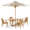 With timeless design and uncompromising craftsmanship, the Martinique Laguna Teak Dining Set for 4 is the embodiment of traditional teak outdoor dining. The Martinique Table's ability to accommodate 6-8 people alongside the Laguna chair's contoured forms make this a functional and comfortable dining set suitable for family gatherings and outdoor dining.