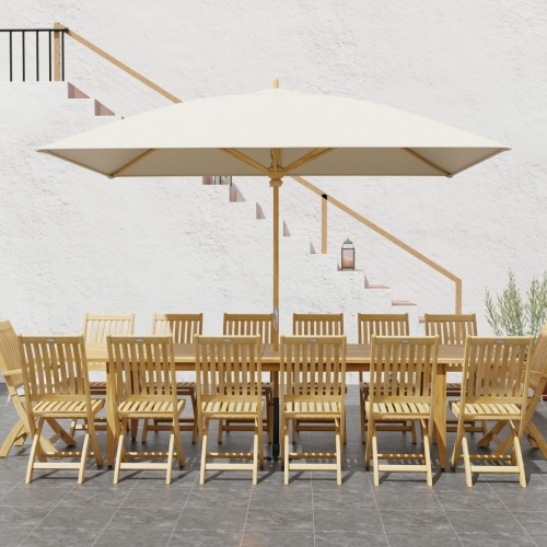 Comfortably seating 14 at the table, the Grand Laguna Barbuda Dining Set is one of our largest dining ensembles. The set includes a beautifully crafted dining table which is extendable from 101.5” to 133” (11.08 feet). Designed to accommodate up to 14, the 36” narrower table width allows for more congenial gatherings in mind, with family and friends, in large or smaller settings. The table is also complimented with our Barbuda Teak Folding Chair which is precision engineered for long lasting durability, resulting in a chair that sits firm with no wobble. Foldable for convenient transportation and storage, this is an ideal chair for small spaces such as yachts, high rise apartments, or extra seating for unexpected guests.