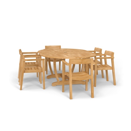 Martinique Horizon 7 pc Teak Dining Set for 6 is a sensational center piece for any space, indoors or out. With the Horizon Collection's simple and clean lines, hints of Danish modern design, this set will transform your dining room or patio with a contemporary yet classic impression.