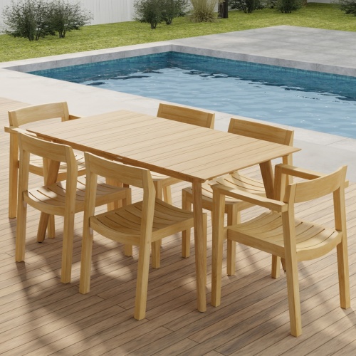 With clean lines and welcoming curves, the 7 piece Surf Horizon Stacking Chair Dining Set is immediately appealing. The Horizon Dining Chairs are minimalist in form yet pure in function, and their gently contoured backrests and seats offering lasting comfort. The Surf Table draws inspiration from Scandinavian architecture, lending it a light and airy appearance. Its irresistibly smooth tabletop makes it an excellent choice for the indoors, though it is more than robust to endure the test of time and the outdoors.