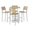 With the interplay of stainless steel and teak wood, the Vogue 5 pc Bar Set joins traditional craftsmanship with contemporary design. The contoured backrests and seats of the bar stools offer lasting comfort. The Bar Table's slats are caulked with Sikaflex, a high-grade polyurethane sealant that prevents liquids from seeping through as well as providing a nautical appeal.