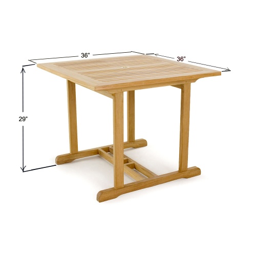 Table - 36" L x 36" W x 29" H Chair-26" L x 21.85" W x 38.5" H 17.5" Seat Width 15.5" Seat Depth 17" Seat Height 26.75" Arm Height When Folded - 44.29"H x 6.1" THK x 21.85" W
