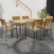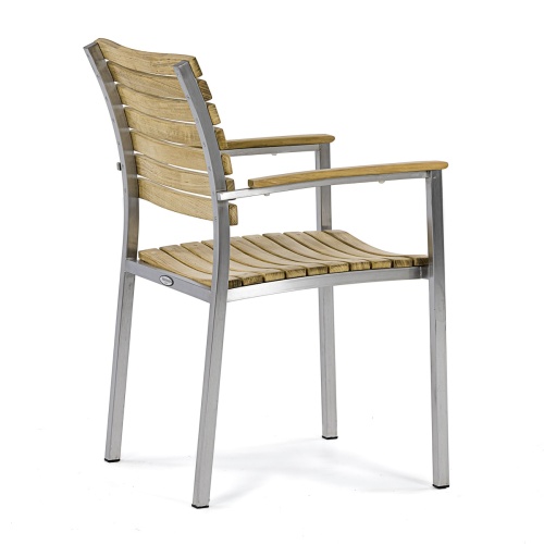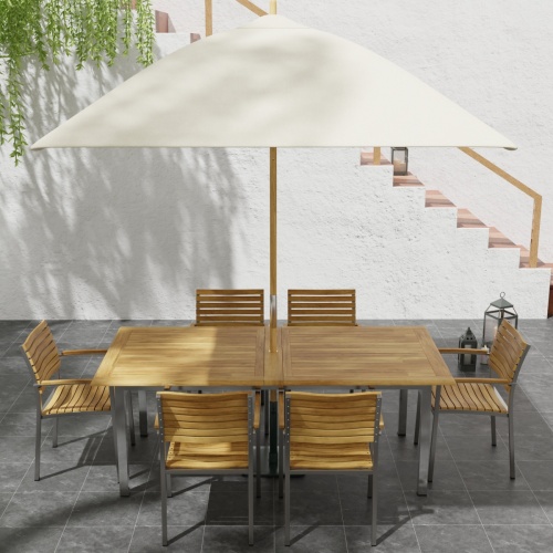 The Vogue 7 piece Dining Set unites 304 stainless steel and the warmth of teak into a sleek contemporary design. The contoured backrests and seats of the Vogue Dining Chairs maximize comfort for outdoor dining while the versatile extension table accommodates any number of family, friends and guests. Part of the Vogue Collection.