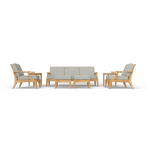 With the deep plush cushions of the Lounge Chairs and their harmony with the Side Tables and 3 Seat Sofa, this Laguna Lounge Set allows you to create a number of arrangements in the loggia or the living room. Whether for entertaining or relaxing, this set offers lasting comfort and durable luxury. The Laguna Collection has been designed with generous proportions and attention to detail, easily allowing it to blend well with both traditional and modern styles.