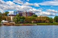 From almost any view, the lake is an ever-present feature of the Merriweather Lakehouse Hotel™ …as if intentionally created to enhance the ambiance and experience for hotel guests. Expansive floor-to-ceiling windows and doorways which open out to expansive patios virtually bring the lake inside for guests to experience. The newly re-designed lobby also offers a wide view of the lake and features an inviting brick fireplace. The lobby and hallways present an historical poster and pictorial display of famous artists who have performed at the Merriweather Post Pavilion. The village’s own beautifully landscaped and night-lit wooden ramp slopes gently down from the hotel’s surrounds to a lake dock. To all appearances, it would seem to be an actual extension of the hotel and provides guests a serene sanctuary along the water’s edge.