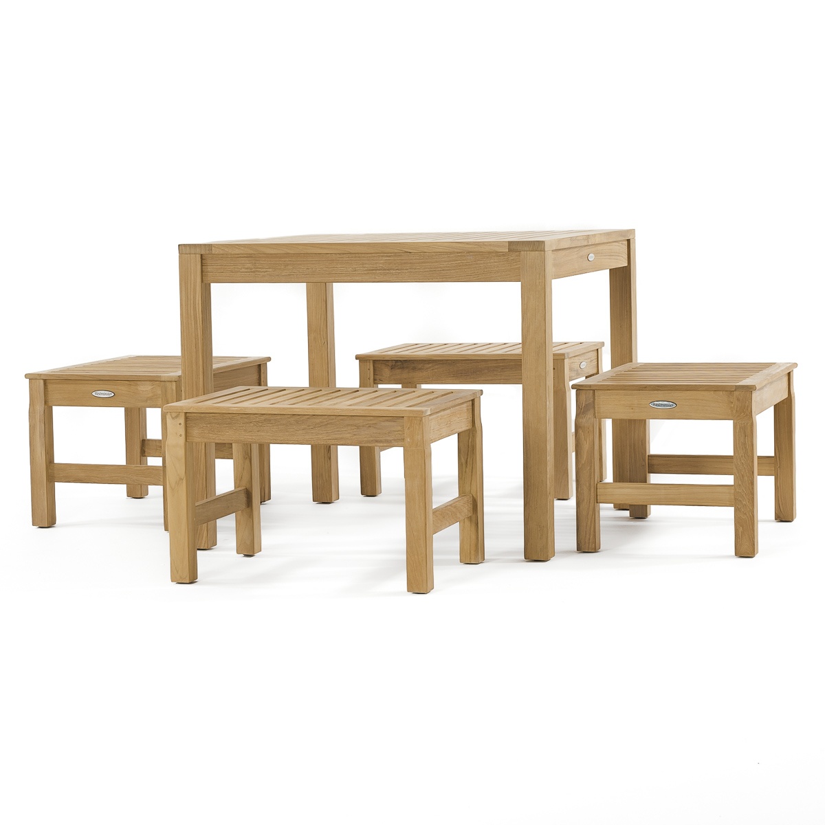 With both traditional and modern appeals, the 5 piece Vogue Laguna Dining Set is defined by convenience and versatility. Though appealing, the Laguna Side Chairs are visually robust and structurally strong given its solid stature. The arbitrary yet clean lines of the Vogue Square Table Top Top defines contemporary outdoor dining. The tabletop is caulked with Sikaflex, a high-grade polyurethane sealant that prevents liquids from seeping through while providing a nautical appeal.