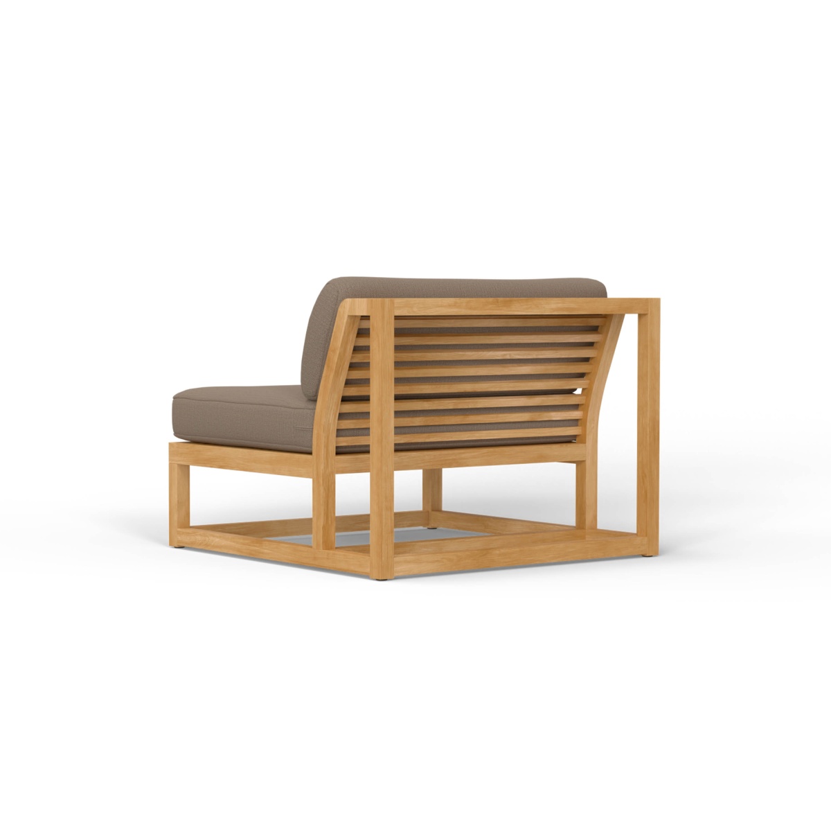 The Maya Teak Slipper Chair accents the entire Maya Collection by providing additional seating to this already luxurious group. Plush deep seating cushions sit atop a minimal, but extremely sturdy teak frame, giving an impression of visual lightness.