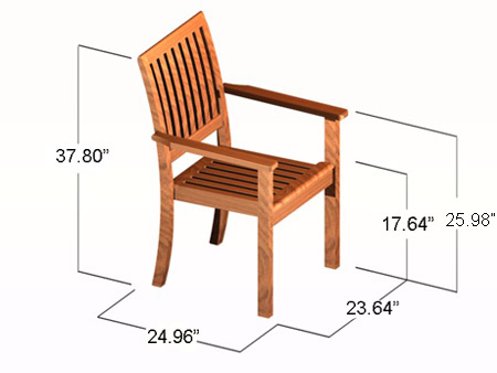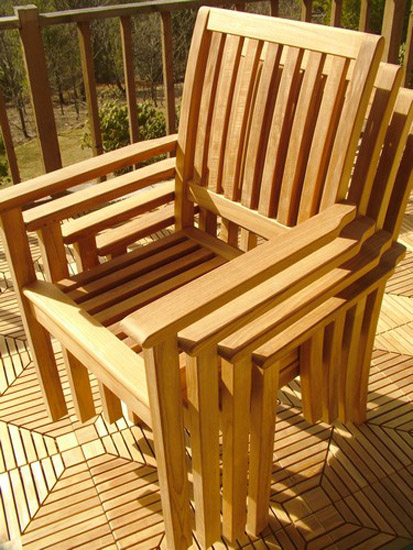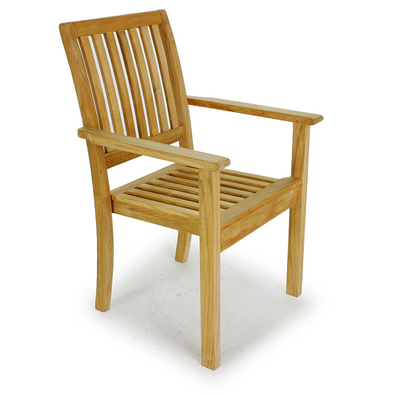 The Sussex Stacking Teak Armchair is the epitome of elegance and contemporary Teak Outdoor dining or just relaxing. This wooden teak chair is new to the Westminster Teak 2005 range. With it's straight slat back and stackable, this makes for comfortable seating as well as storage space. A great combination with the foldable Barbuda Teak Table.