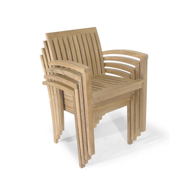 This Teak Stacking Teak Armchair is new to the Westminster Teak 2006 range. With it's curved slat back and stackable, this makes for comfortable seating as well as storage space.
