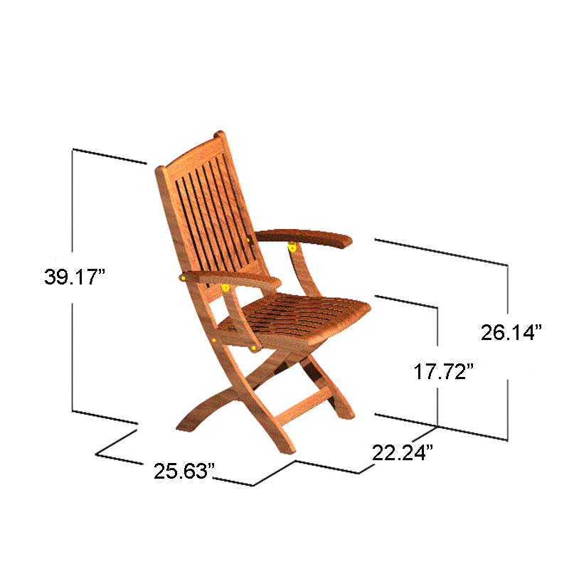 The Westminster Sumatra Teak Folding Armchair displays the qualities that define Westminster Teak like embedded leg bolts, rounded edges, more teak per inch (count the slats) and curved legs for additional strength compared to straight legged wooden chairs.