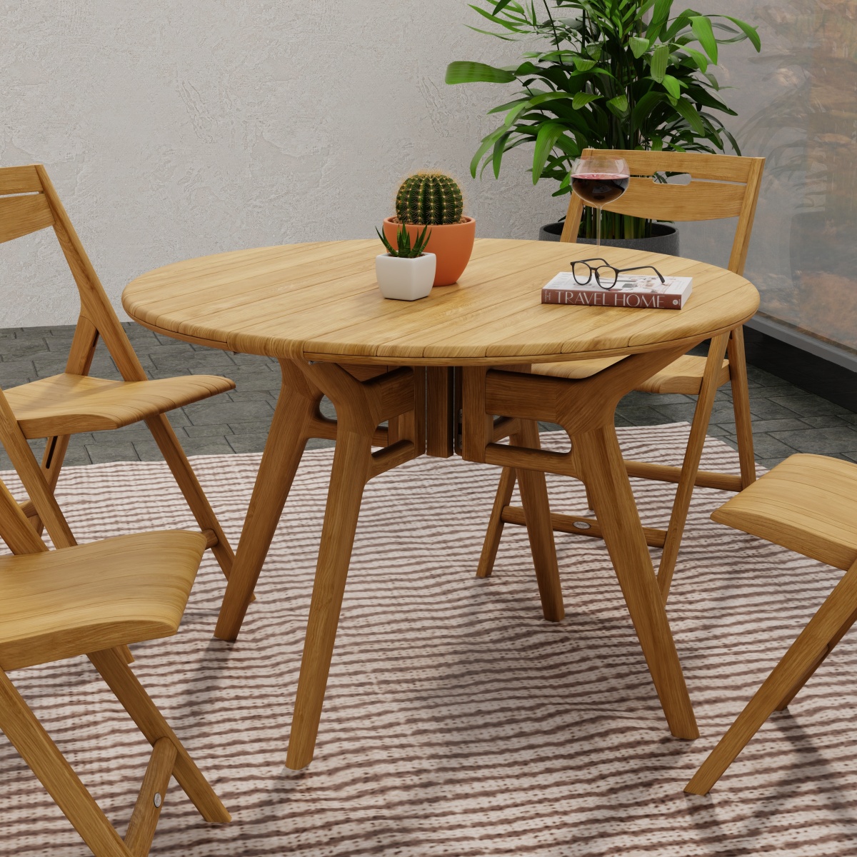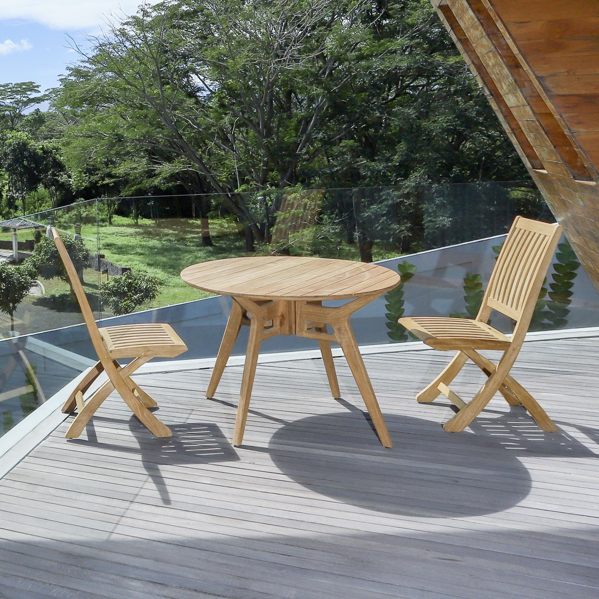 The 42" round table is simply beautiful and the tabletop has a sturdy metal support; easily folds and this piece is the perfect complement to the Surf teak chairs. Very satisfied with this purchase. --Christopher N., New Orleans, Louisiana, December 4, 2019