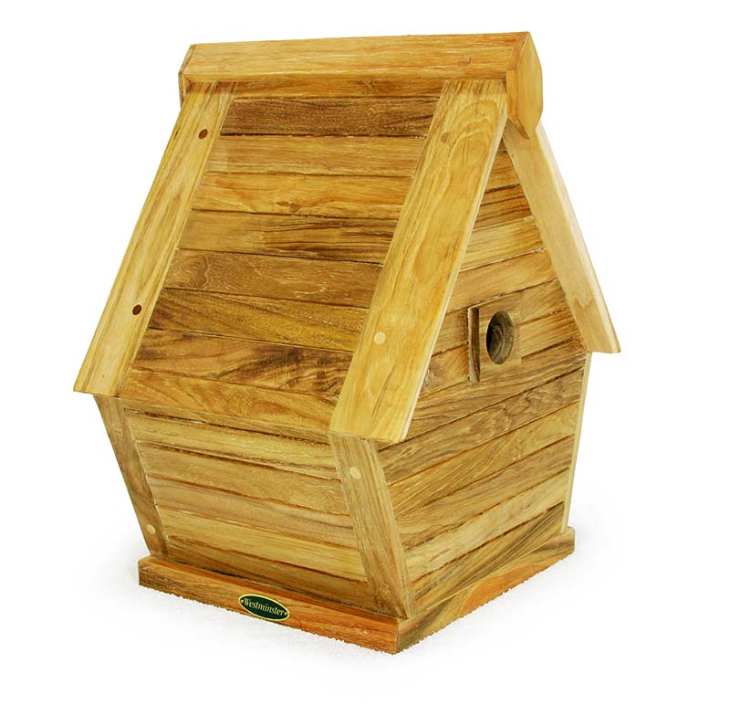 Westminster Teak bird houses are simply a delight for both birds and the bird watchers since they provide adequate protection for the birds while creating excitement for the bird enthusiasts. Every bird house features the Westminster Teak design that allows easy access for cleaning or viewing the latest inhabitants. These outdoor teak bird houses will provide years of enjoyment since they are constructed of quality teak wood with rugged good looks.This bird house will suit slightly larger birds than 19001.