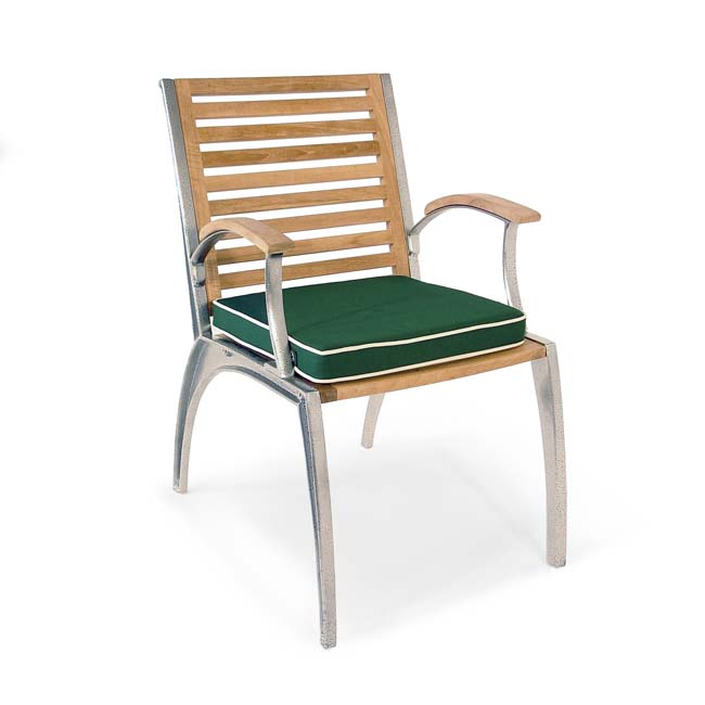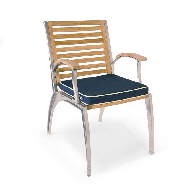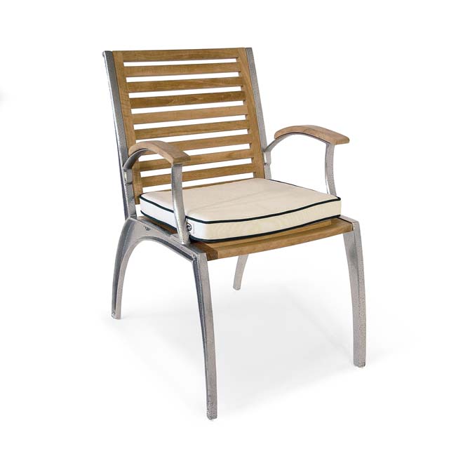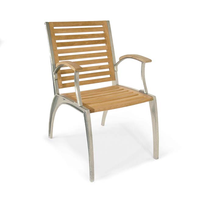 The 2003 Westminster Teak Lava Armchair is lightweight and designed with an upscale Silver Black Dot Epoxy Powder Coated finish. The finish is impeccable and unique in every way. The teak wood used in this armchair is premium grade A teak, with the smoothest finish in the industry. Lifetime warranty.