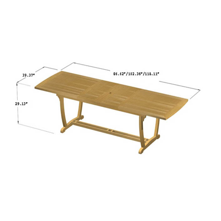 | Overall size | Table 86.25/102/118" L x 39.25" W x 29.25" H; Chair 31" L x 24.5" W x 43" H Seat - 17.5" H |