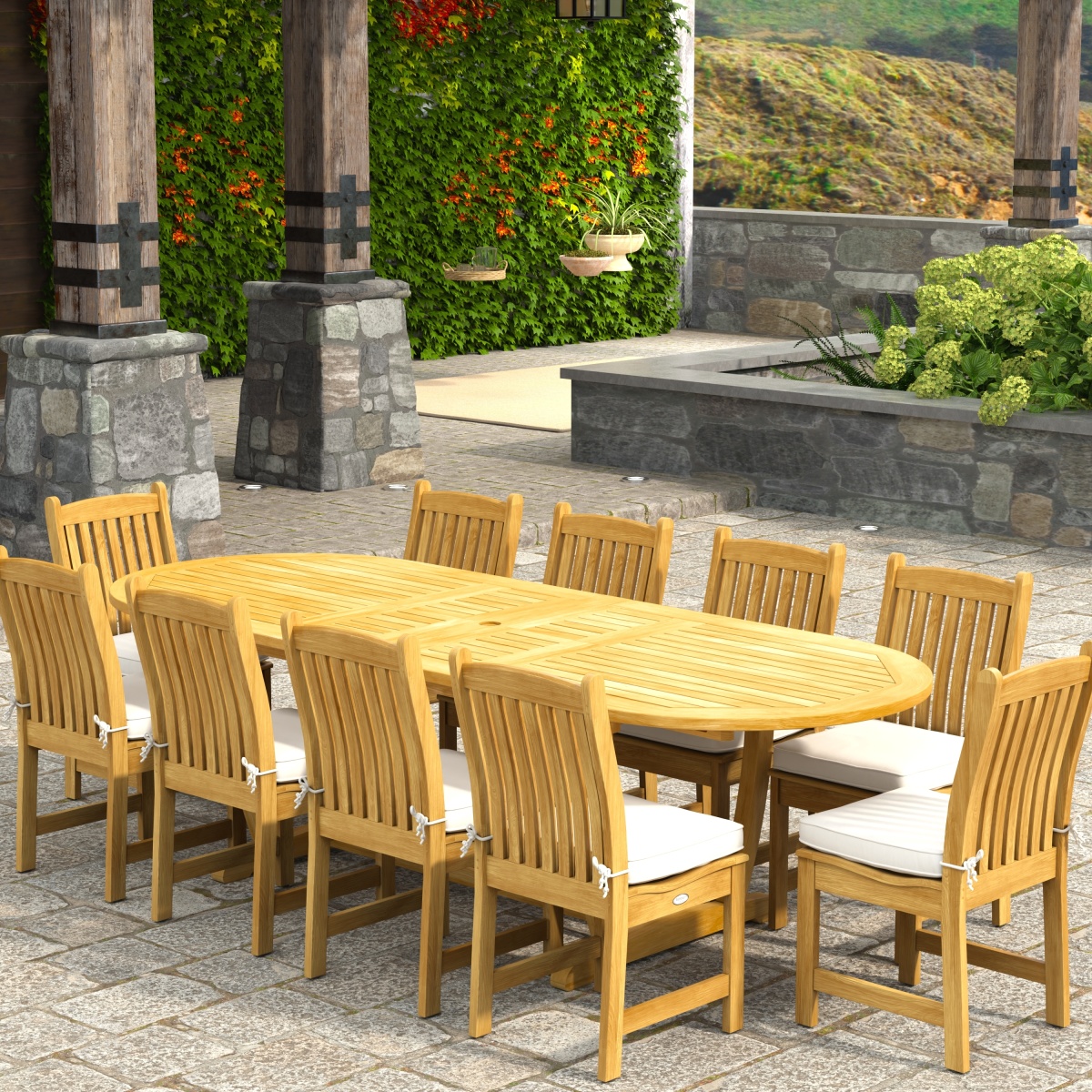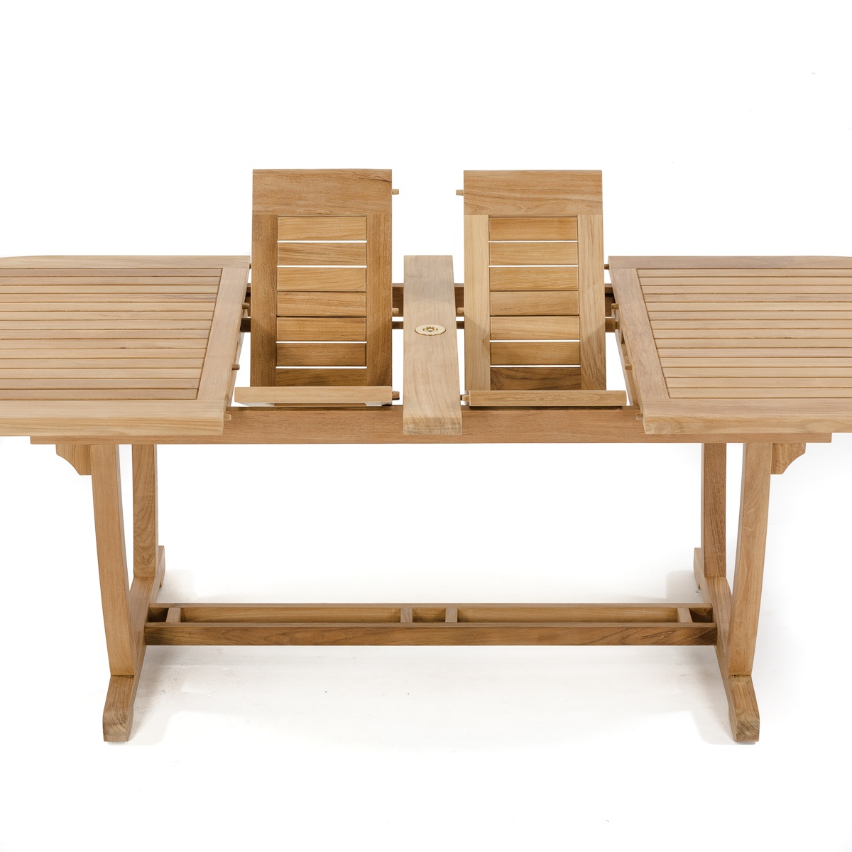 Entertain your guests in style with this elegant Montserrat Teak Furniture Set . With three different extension settings, the Montserrat Teak Table can easily convert this dining set for 10 to a dining set for 8 or 6 and with its Double Leaf Extension System it is always Umbrella ready.