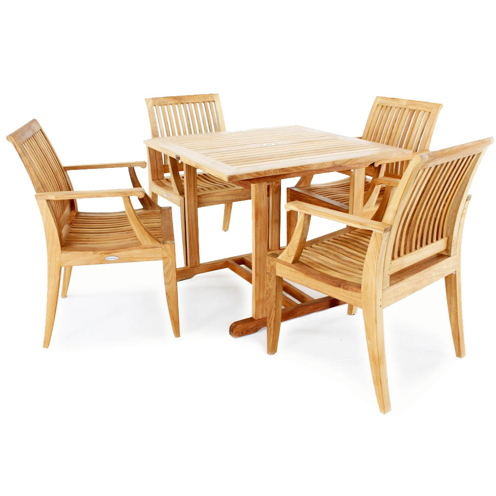 36" Square Teak Dinette Table: Glides Laguna Teak Dining Armchair: Glides |
