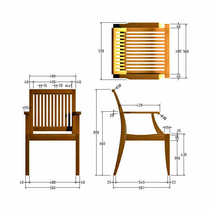 Laguna Teak Dining Armchair: 4 x 1.00 yards