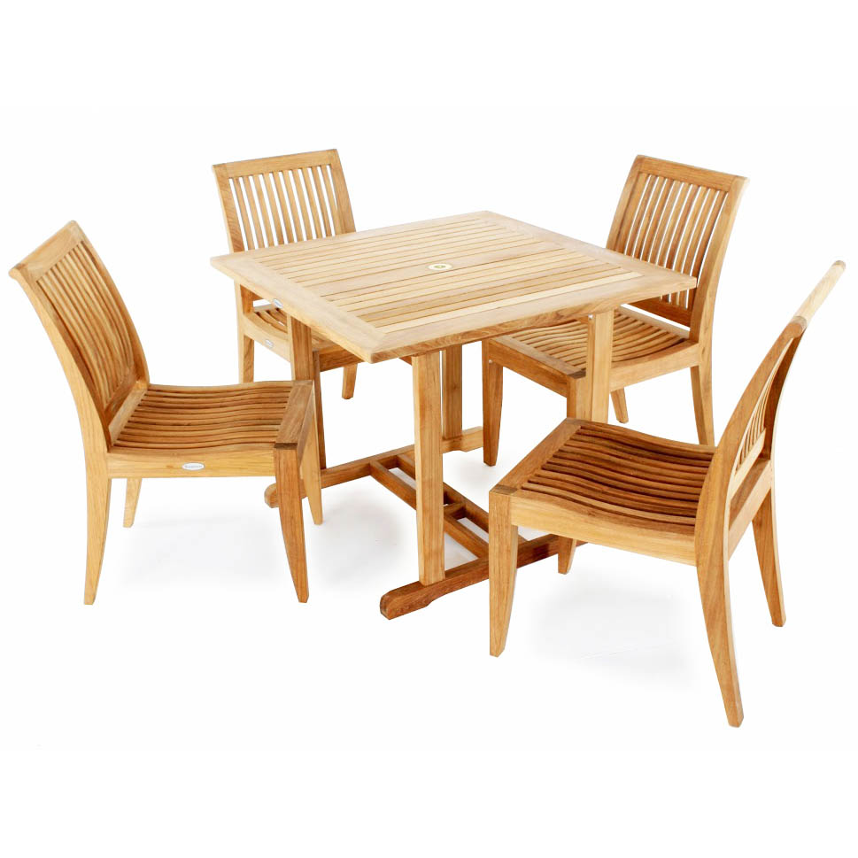 36" Square Teak Dinette Table: Glides Laguna Teak Side Chair: Glides |