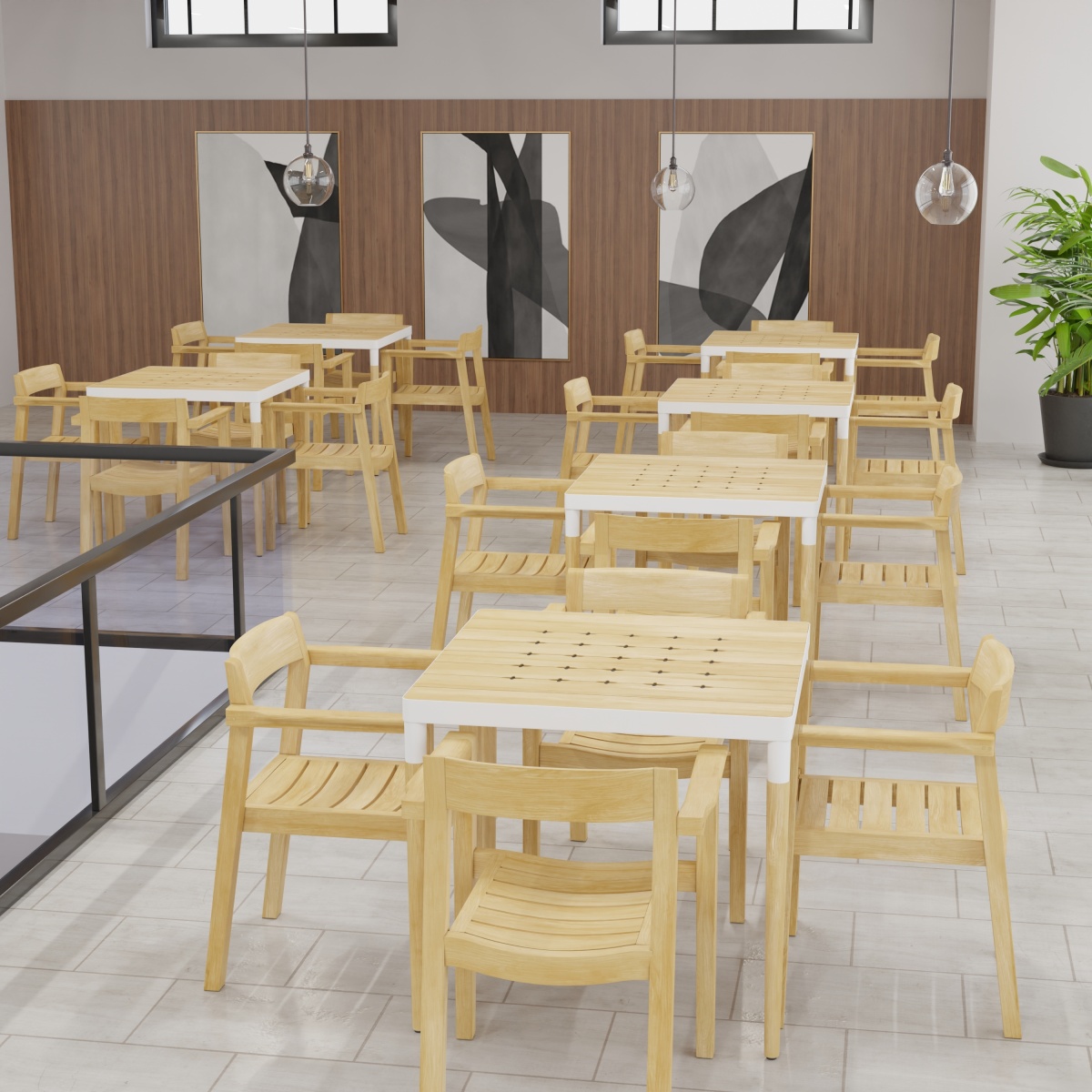 Optional cushions available manufactured with Premium Sunbrella Fabrics. Crafted with SVLK Certified Grade A teak harvested from sustainable plantations in Indonesia and powder coated aluminum. Manufactured to standard specifications for commercial and residential use.