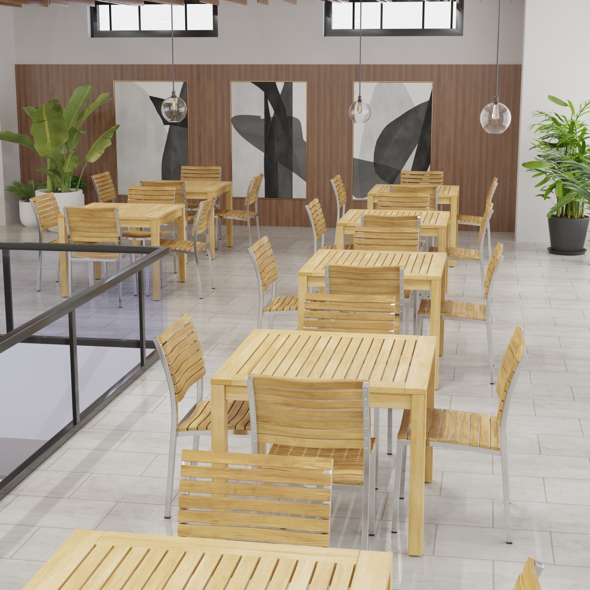 Vogue Side Chair: Glides Bistro Teak Dining Table: Large Levelers |