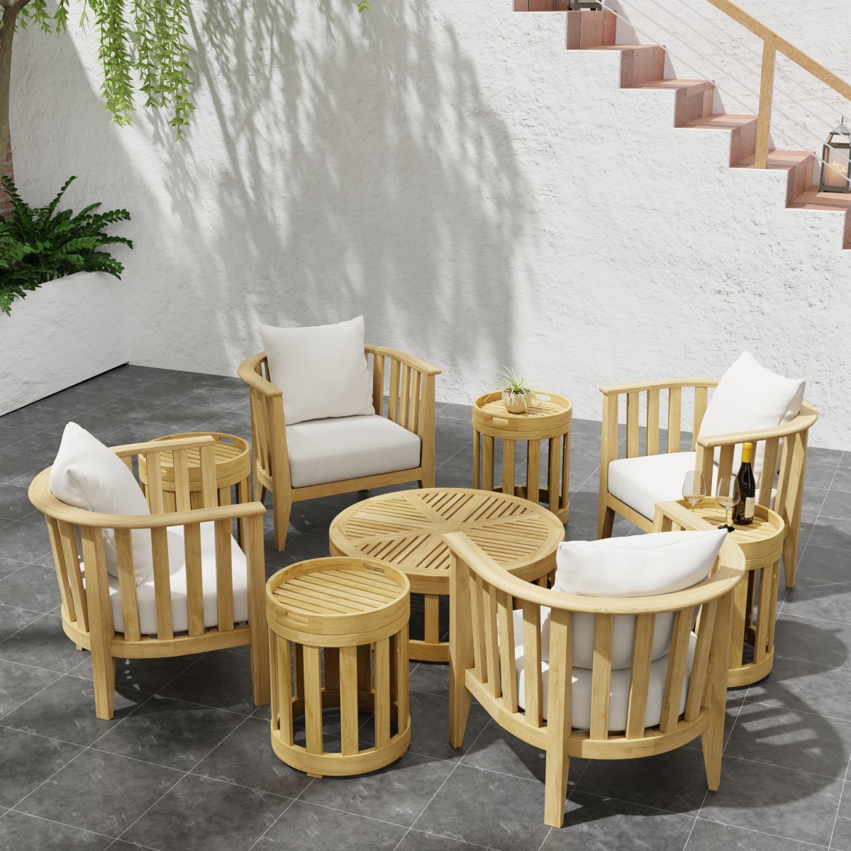 Built from 100% Grade A Teak, harvested from sustainable plantations in Indonesia. Every piece is precision manufactured to standard specifications for commercial and residential use. Lifetime Warranty.