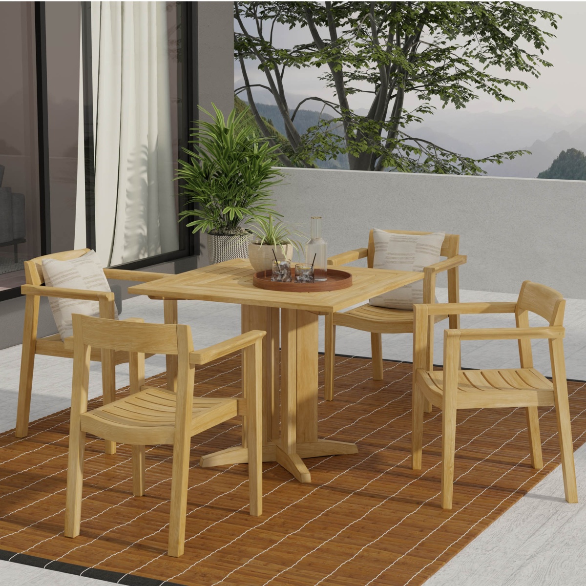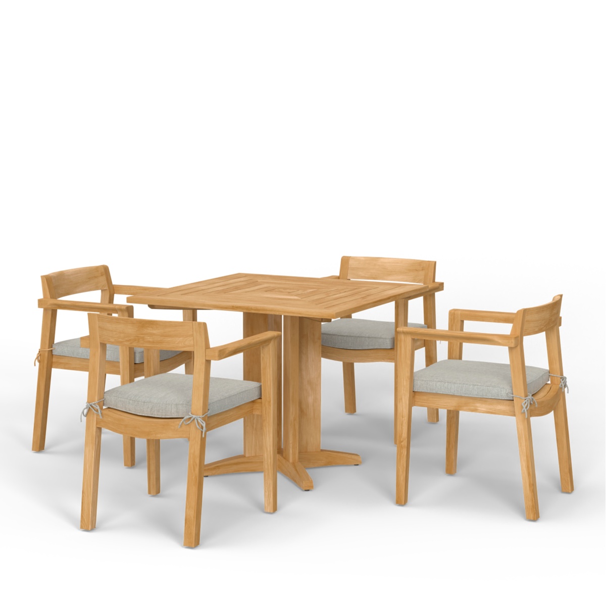 Horizon Teak Dining Armchair: Glides Pyramid Square Table 36": Glides |
