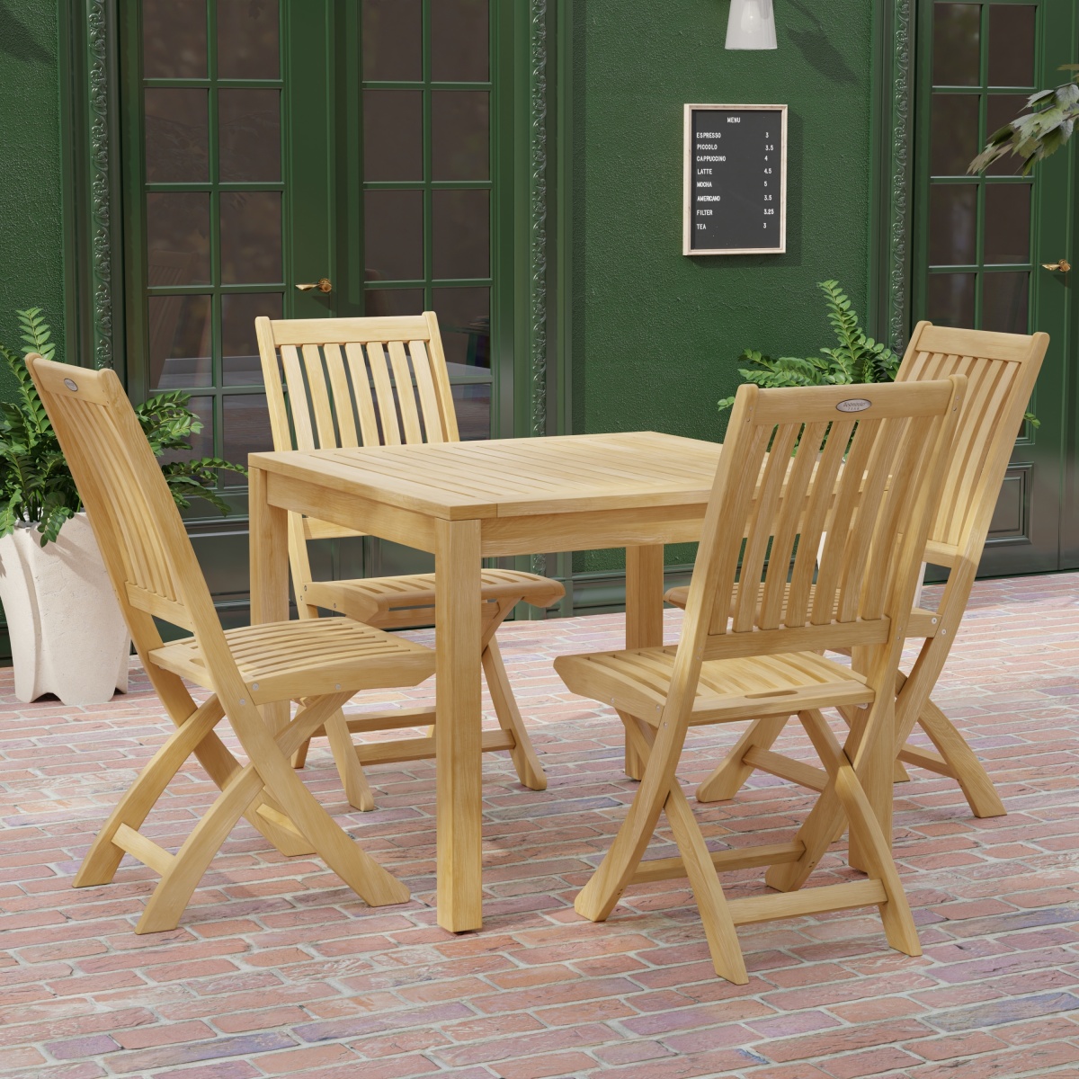 The Barbuda 5 piece Bistro Set combines the traditional craftsmanship of the table with contemporary design in the union of The Barbuda Folding Side Chair is precision engineered for long lasting durability, resulting in a beautiful chair that sits firm with no wobble. Foldable for quick and easy storage, this is the perfect chair for boats, yachts, or extra seating for unexpected dinner guests.