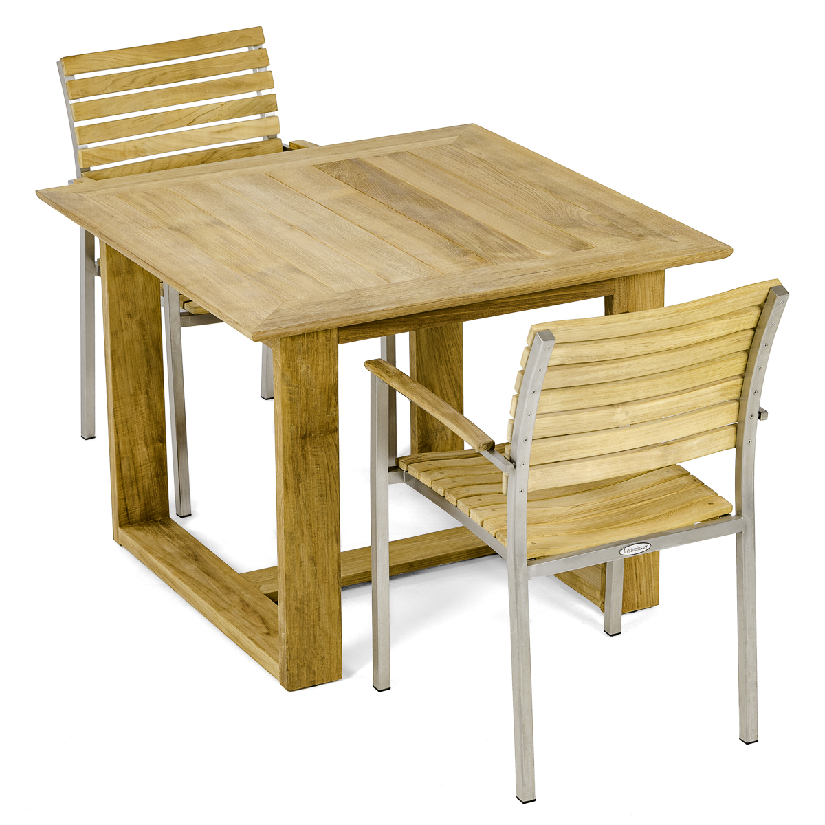 Vogue Stacking Chair: Glides Horizon Square Teak Table: Glides |