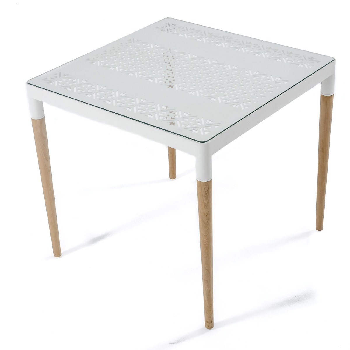 Pairing traditional and contemporary designs, the Bloom Horizon 5 piece set is defined by the stunning contrasts of refreshing white powder coated aluminum and the warmth of micro-smooth teak. The ergonomic design in the backrest and seat of the Horizon Stacking Side Chairs offers lasting comfort and can be stacked for easy storage. The aluminum bloom design in the table, precision cut with the latest water-jet technology, casts lively shadows of spring flowers under the sun. With the impeccable strength of two classic outdoor materials, all pieces endure the test of time and the outdoors.