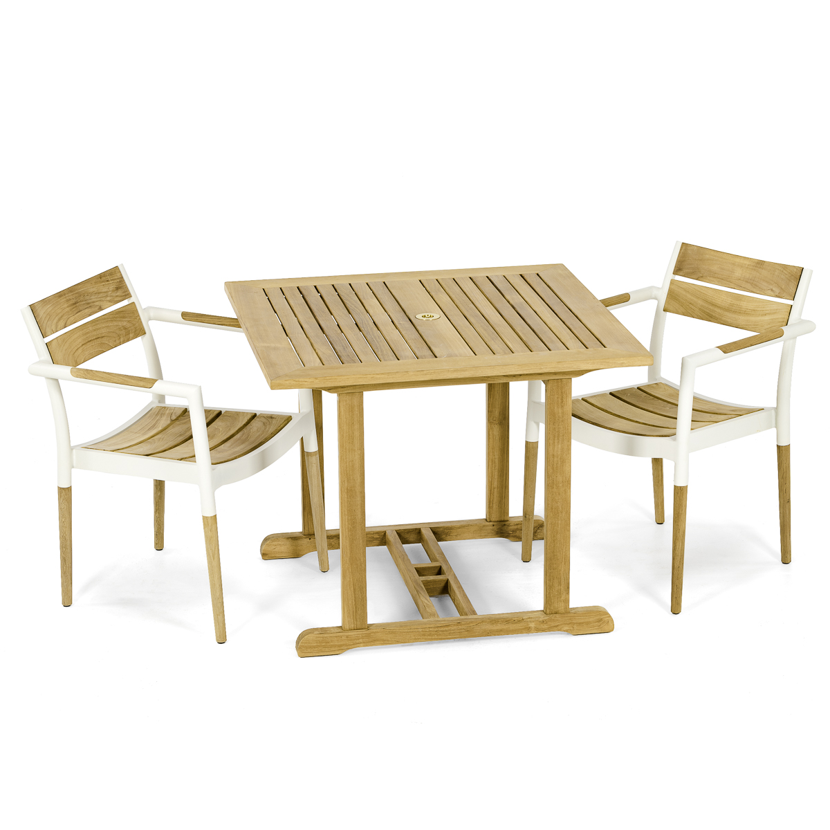 The interplay of Teak and Powder Coated Aluminum in the Bloom Dining Chairs beautifully complement the simple lines of the 36 inch Square Teak Table in the Bloom Square Teak Bistro Set, resulting in a refined combination that will stand the test of time. The Bloom Dining Chairs offer lasting comfort even without cushions. With both traditional and contemporary elements, this set easily finds its home in gardens or loggias, though it is just as suitable indoors.