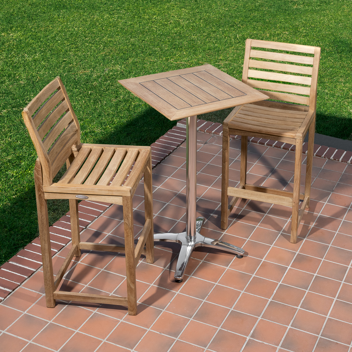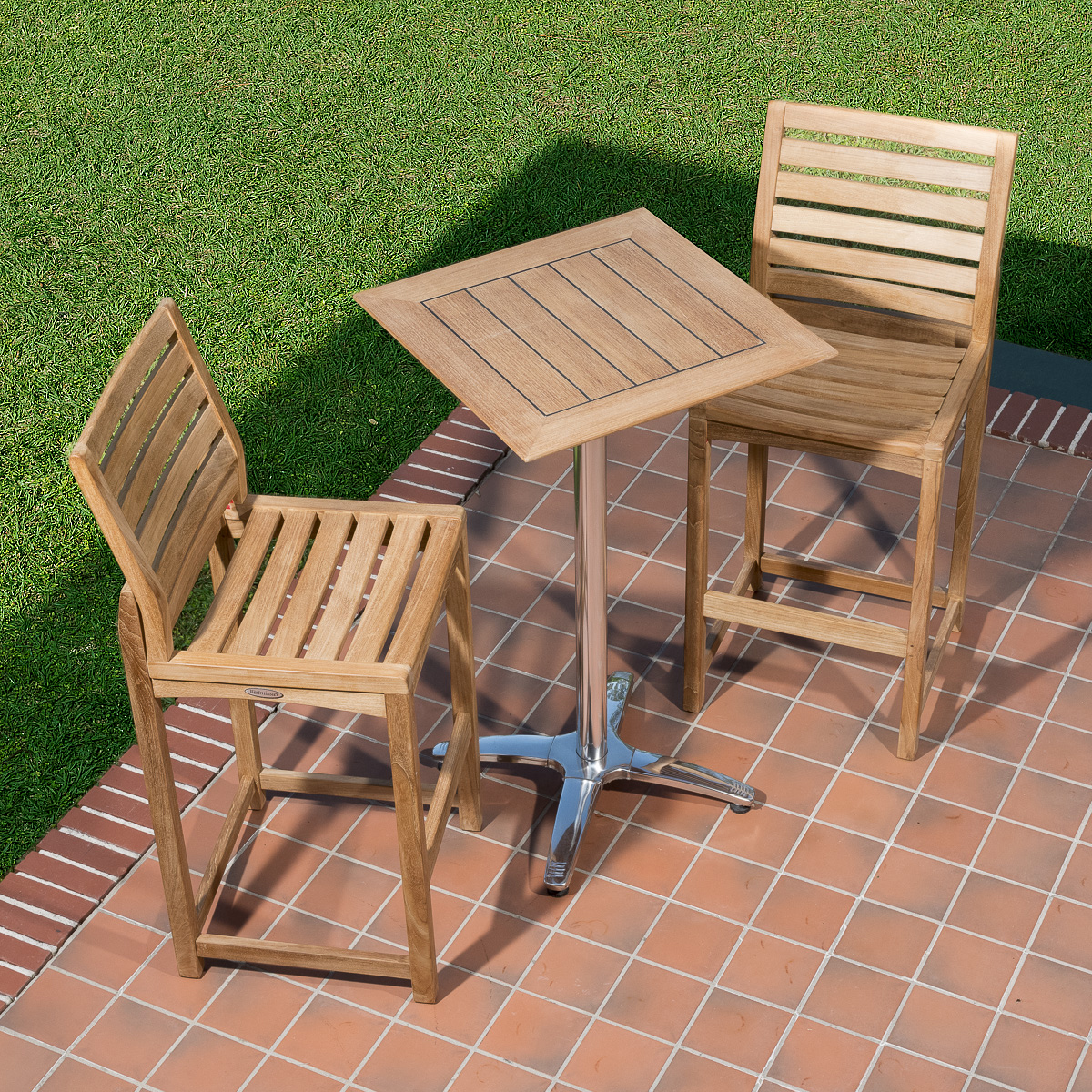 With the transitional appeal of Stainless and Teak, the Vogue Somerset Square Bar Set fits well in any setting. The Somerset Side Bar Stools offer lasting comfort with their gently contoured backrests and seats while complementing the Vogue 24 x 24 Table Top and Gar Stainless Steel Base, achieving a simple yet harmonious balance.