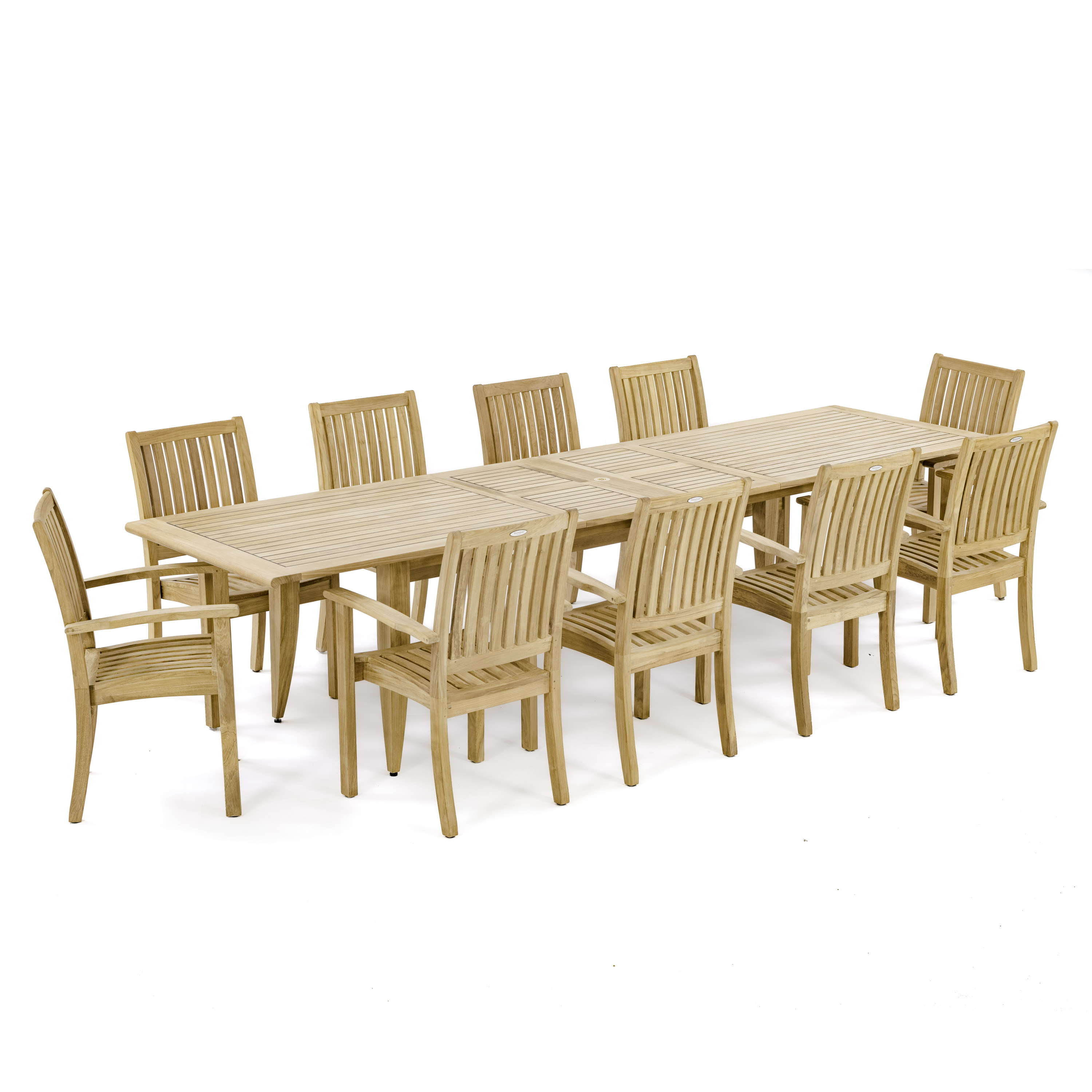 Sussex Teak Chair: Glides Grand Laguna 11 ft Table: Large Levelers |