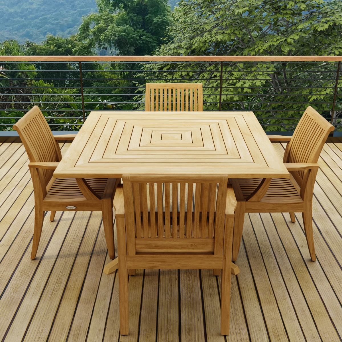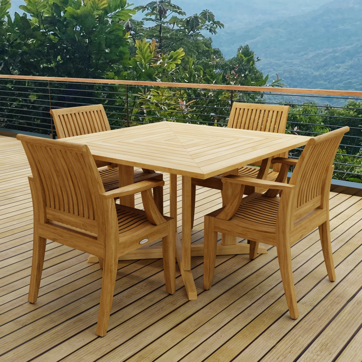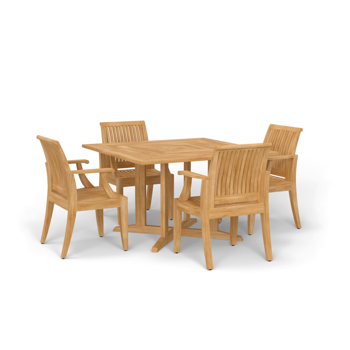 48" Pyramid Teak Table: Glides Laguna Teak Dining Armchair: Glides |