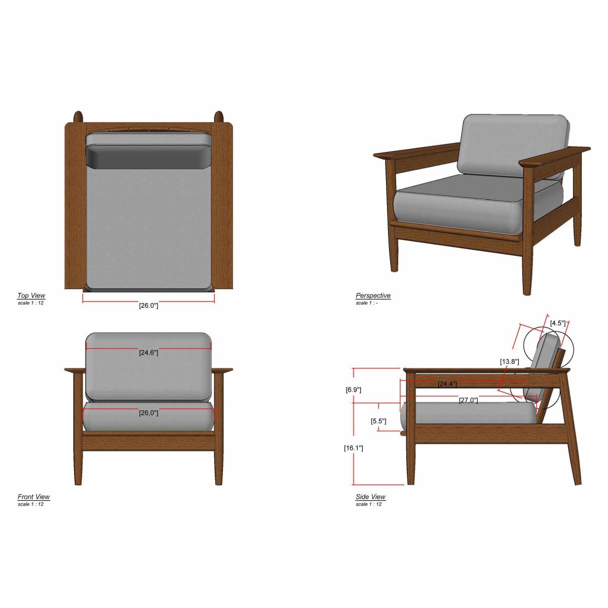 26" Seat Width x 25.9" Seat Depth x 10.6" Seat Height