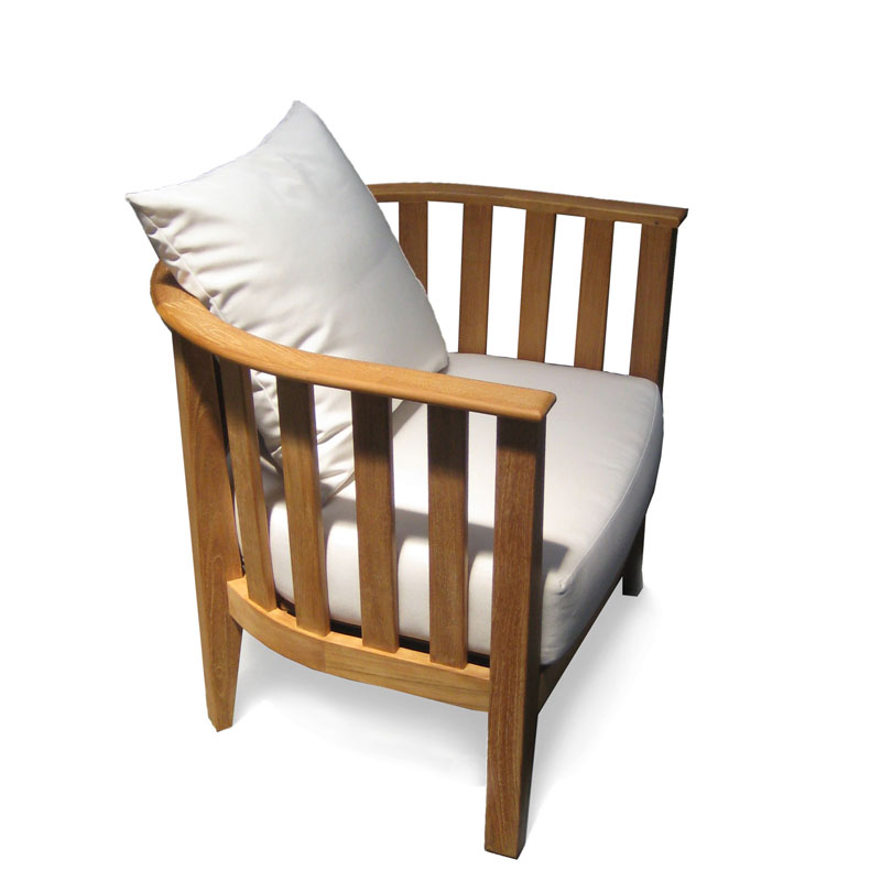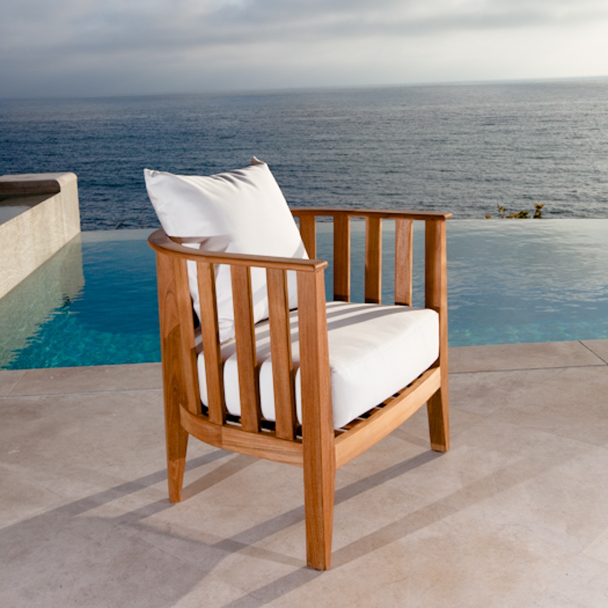 With its welcoming shape, elegant slats, and the warmth of premium teak, the Kafelonia Club Chair is difficult to resist. Deep, plush seat and back cushions on generously proportioned frame allows "unrestricted movement" for comfort in seating over extended periods of time. Lavish use of premium teak in the frame of the furniture ensures maximum structural strength while providing warmth and beauty in any space. The pure forms and modern simplicity of each piece in the collection is a true reflection in timelessness. Part of the Kafelonia collection.