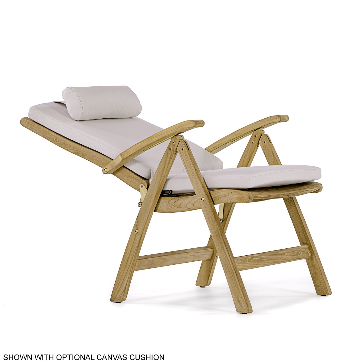 The Barbuda Outdoor Recliner is our most ample folding chair, adjustable up to 6 different reclining positions, and folds for easy storage. Converts into an after dinner lounge chair with our Teak Folding Ottoman, making the recliner a versatile, optimal choice for patios with limited room. Pairs with any one of our Dining Tables. Built to withstand the elements. Part of the Barbuda Collection.