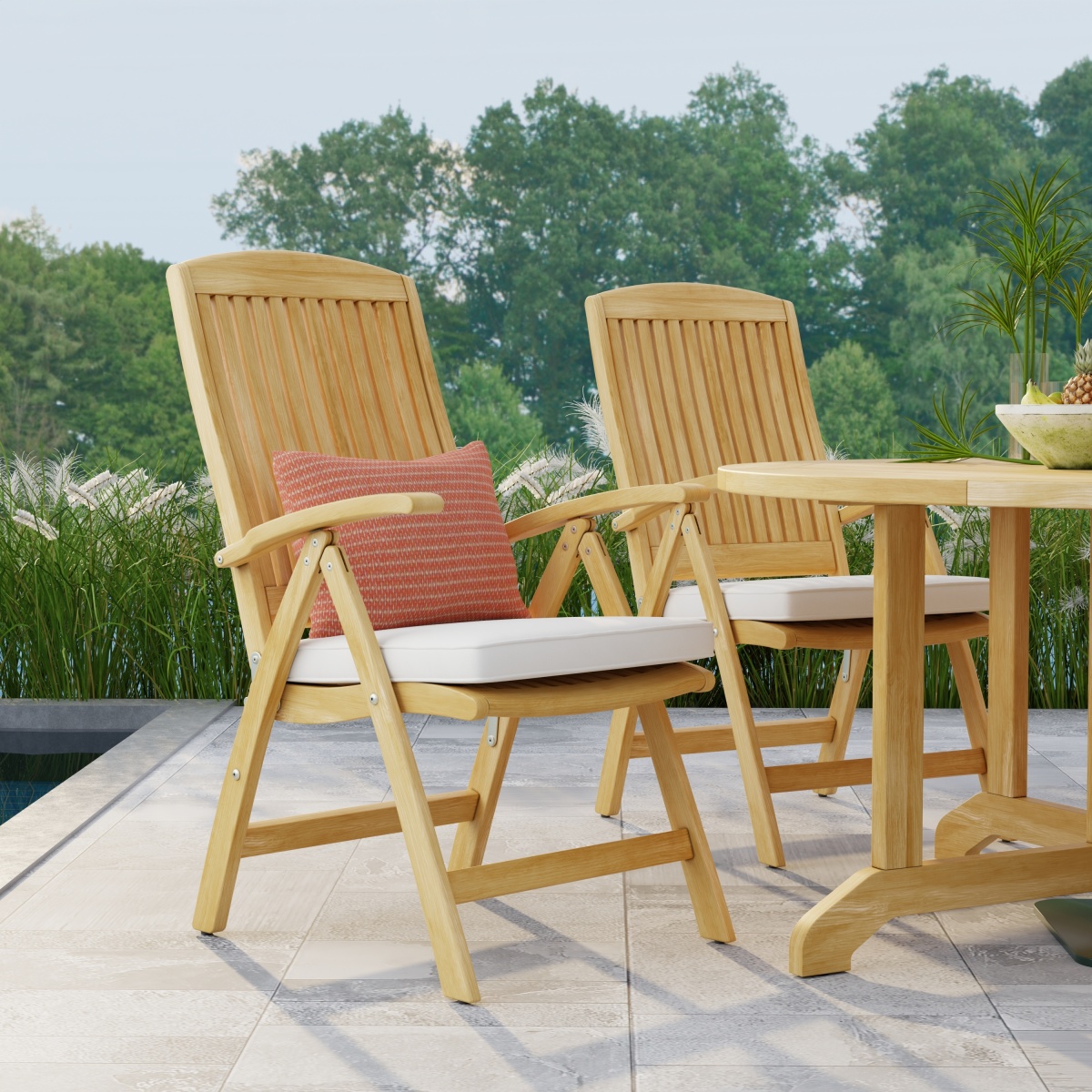 The Barbuda Outdoor Recliner is our most ample folding chair. Converts into an after dinner lounge chair when paired with our Teak Folding Ottoman, making the recliner a versatile, optimal choice for patios with limited room. Pairs with any one of our Dining Tables. Part of the Barbuda Collection.