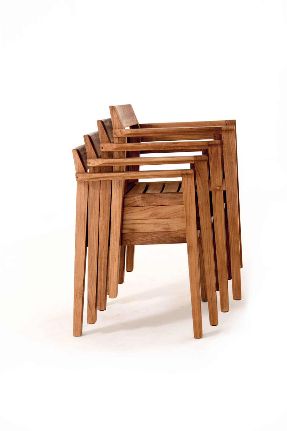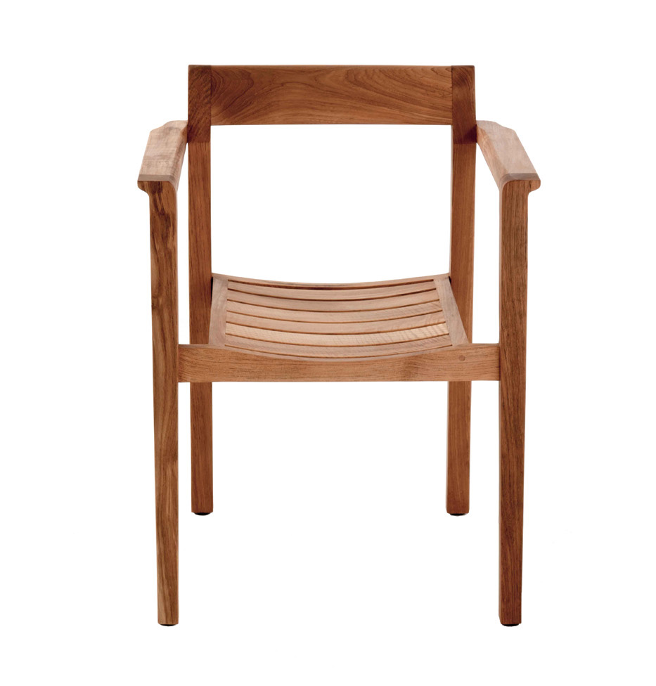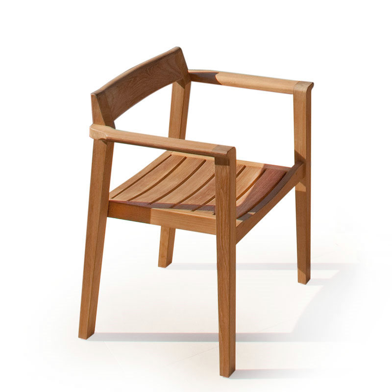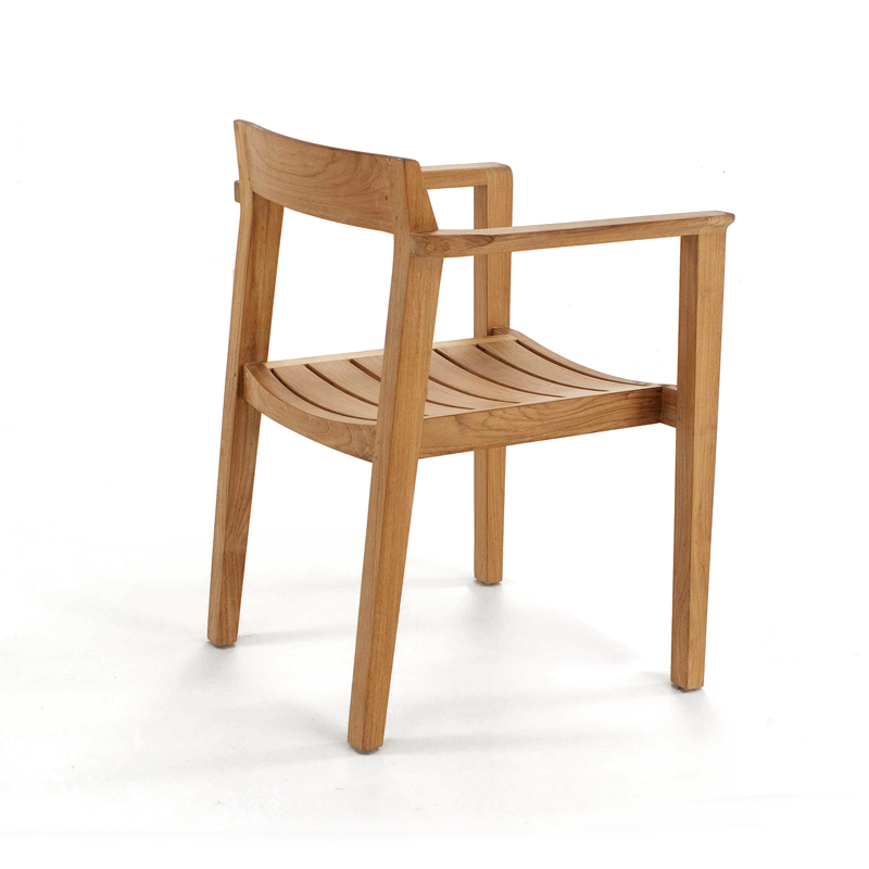 Artfully constructed from all solid teak in the time-honored methods of mortise-and-tenon joinery, the Horizon Stacking Armchair is truly an implementation in simplicity and purity of form. Elegantly scaled and well -proportioned, the chair hints at Danish modern. The gently curved back, made from solid unlaminated teak, cradles the back firmly yet comfortably. The beautifully sculptured armrests feature smooth curves further enhancing the comfort of extended seating.
