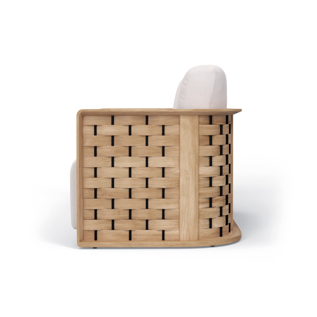 The Soven Collection epitomizes the idea of merging artisanal craftsmanship with modern methods, when tradition and technology work harmoniously in tandem. The sofa and lounge chairs of the collection use macro-scale engineered laminated teak veneers woven in “warp-and-weft” of traditional weaving technique to bring about the inviting “cocoon” like harmonious shapes onto the solid teak frames. Generous proportions of the cushions are used to ensure maximum support and comfort.