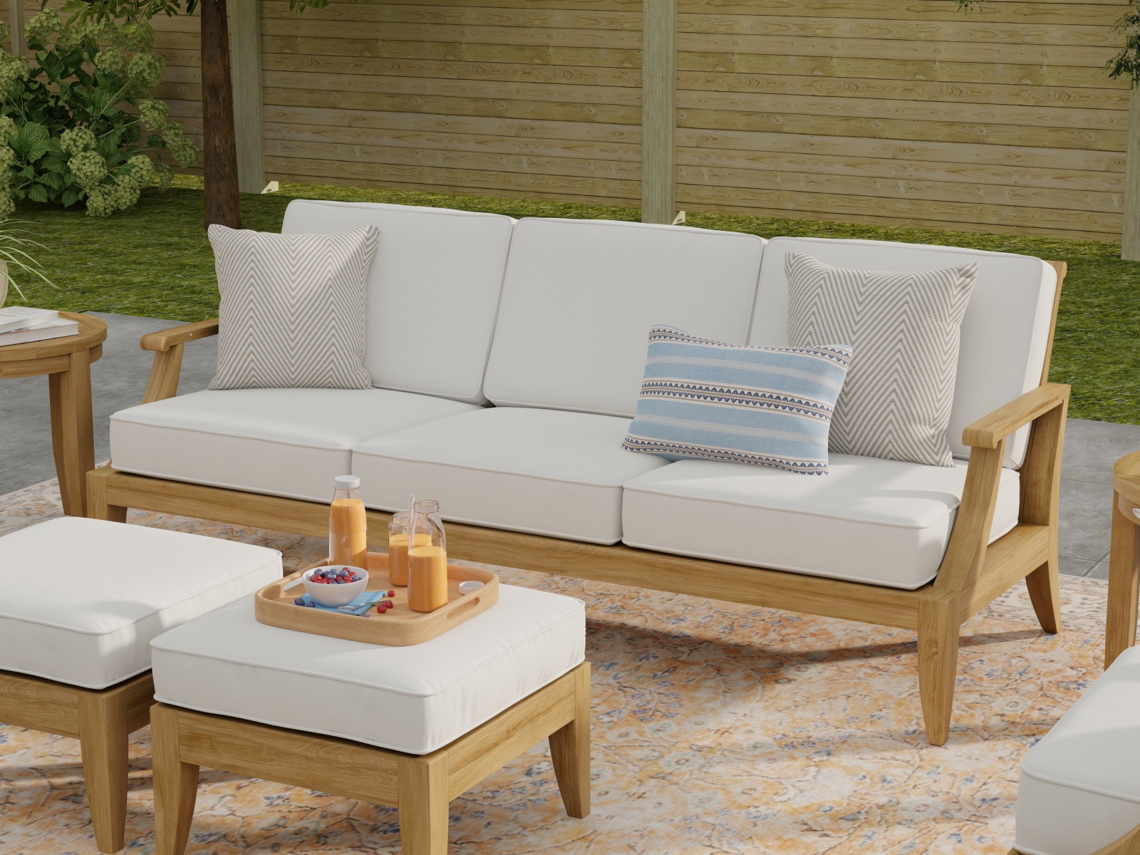Part of the Laguna Collection, uniting classic style with clean architectural lines, the solid teak 3-seater Laguna Sofa has all the features that will make it at home indoors, the veranda, or your garden. Marrying classic style with clean architectural lines, the generously proportioned 3-seater sofa has been thoughtfully designed to include an inside length of 78.8-inches which gives you that “extra room” you’ve always wished you had in sofas.