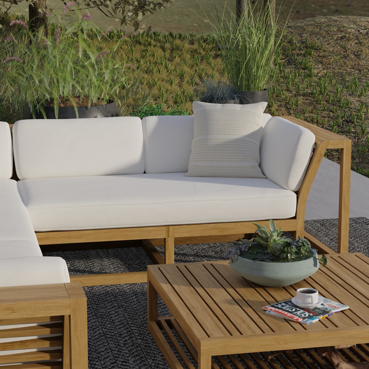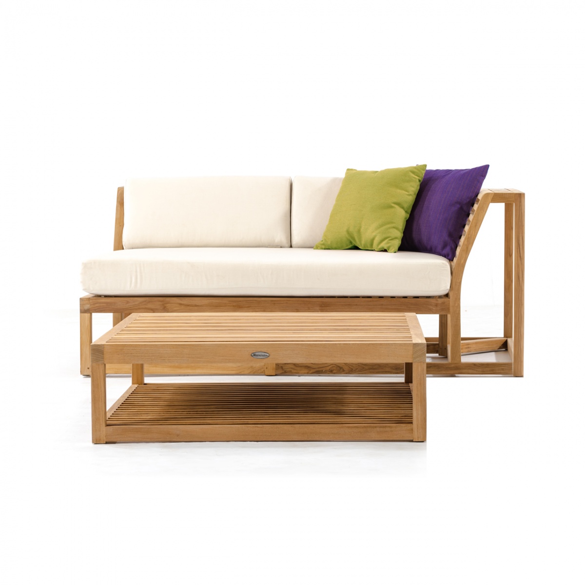 Plush, deep cushions atop clean-lined solid teak frames give the impression of visual lightness while the Maya's 6" wrap-around armrests allow ample space for drinks, yet are sturdy enough to sit on. The Maya Left Sectional can be used in a number of combinations with the other pieces in the Maya collection to fit any space. Pair with a Maya Corner Sectional or the Maya Right Sectional to make unique and arrangeable sofas. Combine with more pieces from the Maya Collection to make your own daybed oasis--the possibilities are endless, and it is sure to be the center of any social gathering or peaceful relaxation.